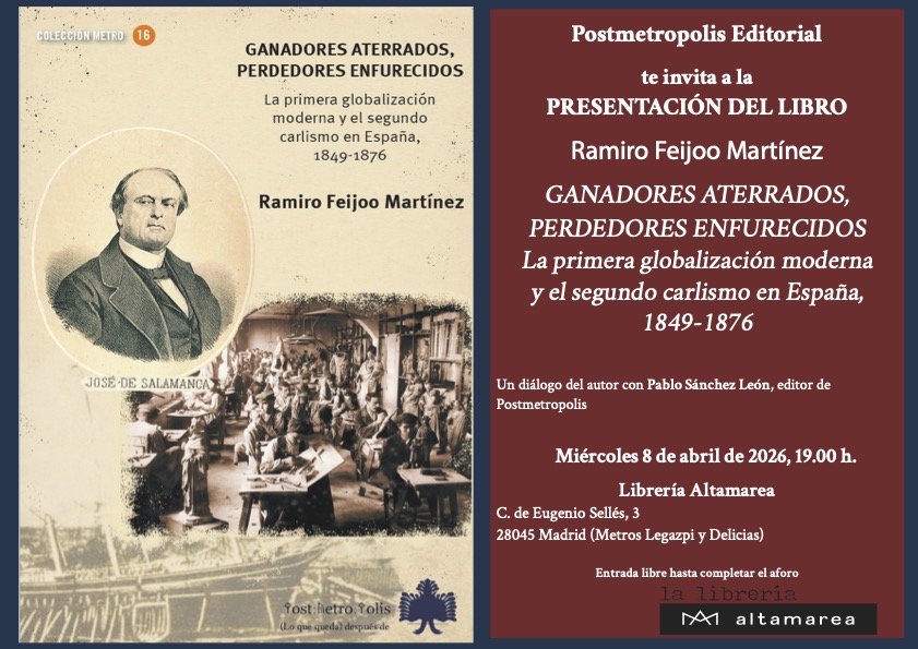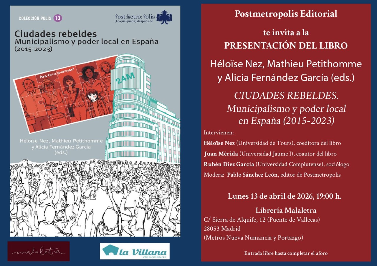 Un diálogo del autor con Pablo Sánchez León, editor de Postmetropolis Miércoles 8 de abril de 2026, 19.00 h. Librería Altamarea. C. de Eugenio Sellés, 3. 28045 Madrid (Metros Legazpi y Delicias)